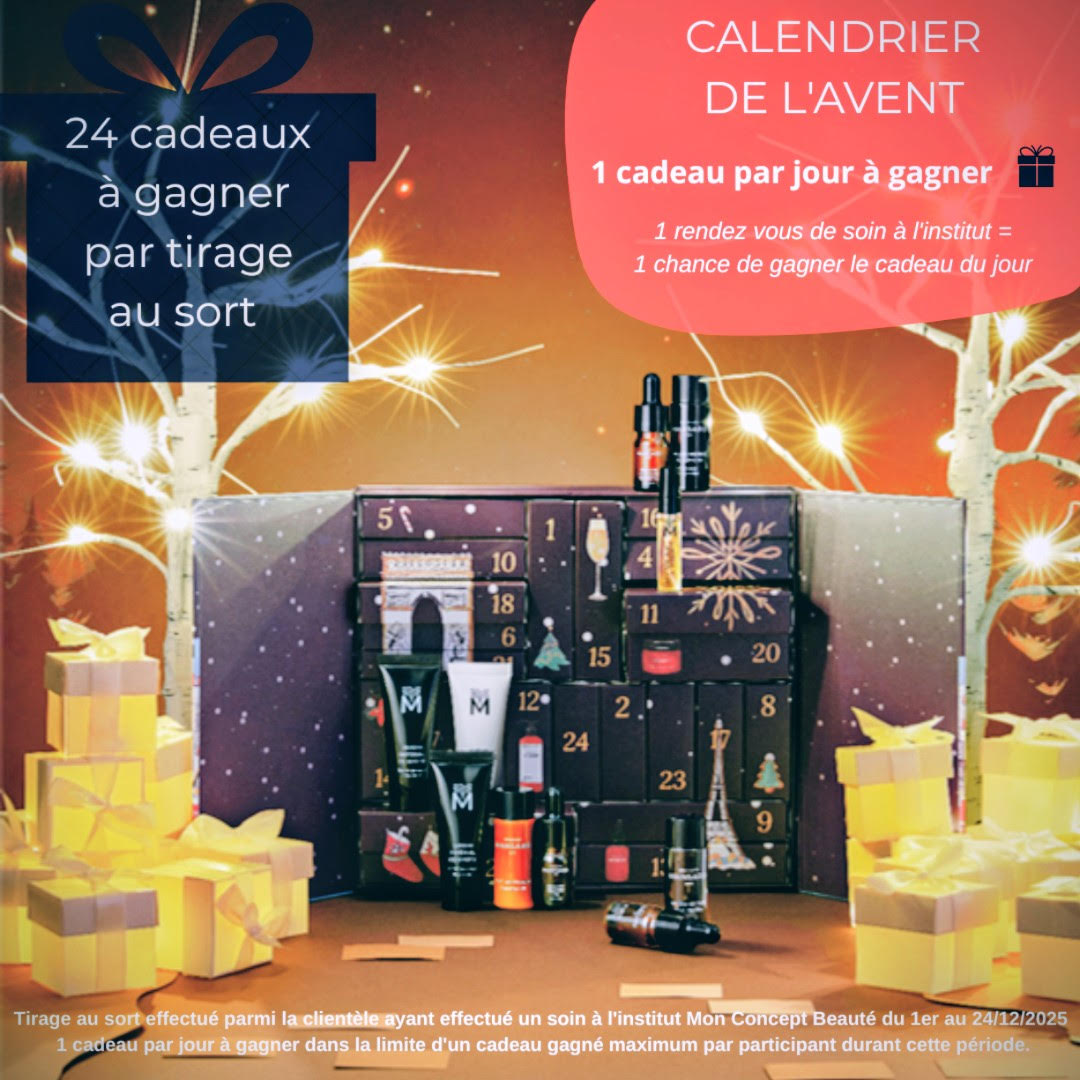 Dès le 1er décembre et en attendant Noël, tentez de gagner 1 cadeau beauté* lors de votre rendez-vous à l’institut 🎁.